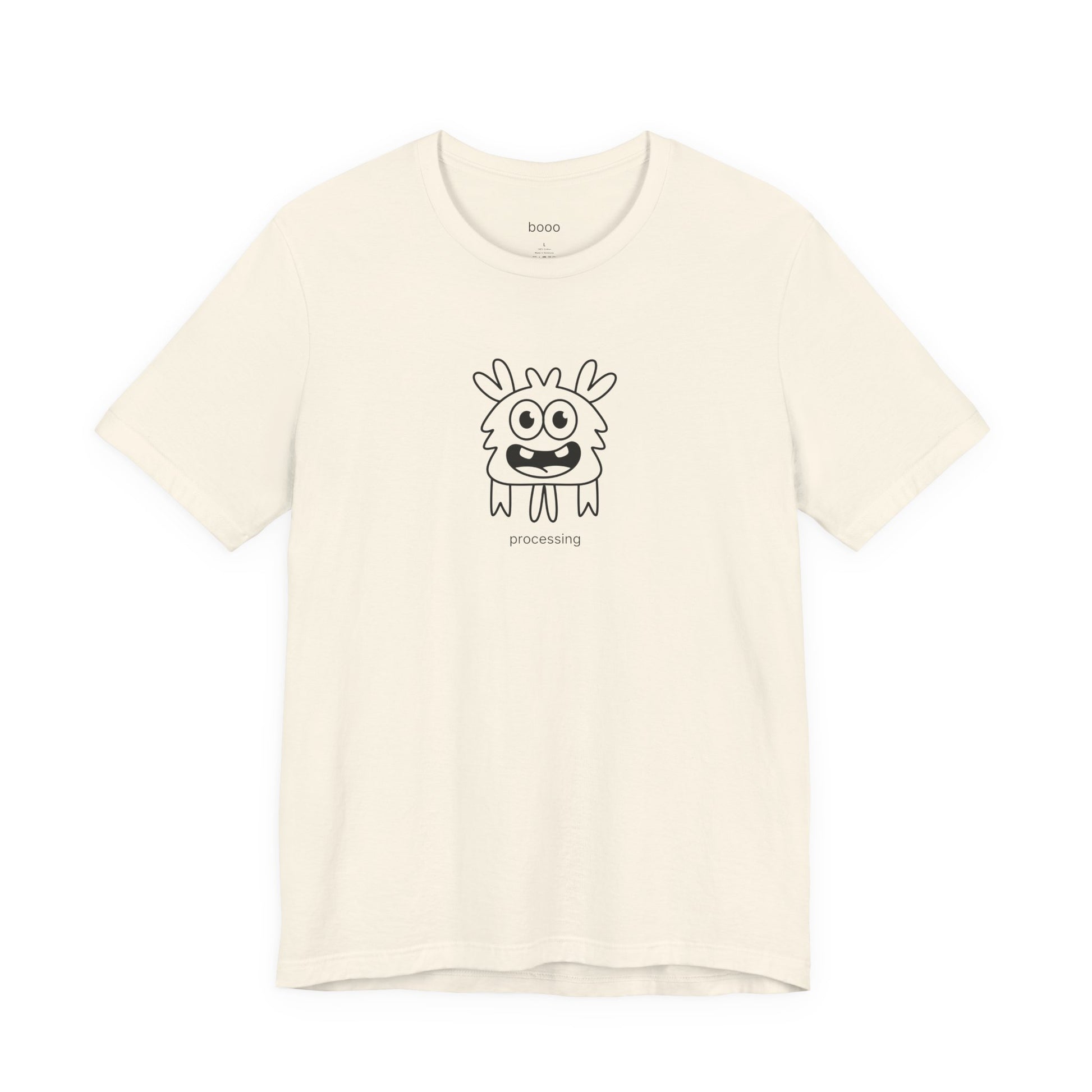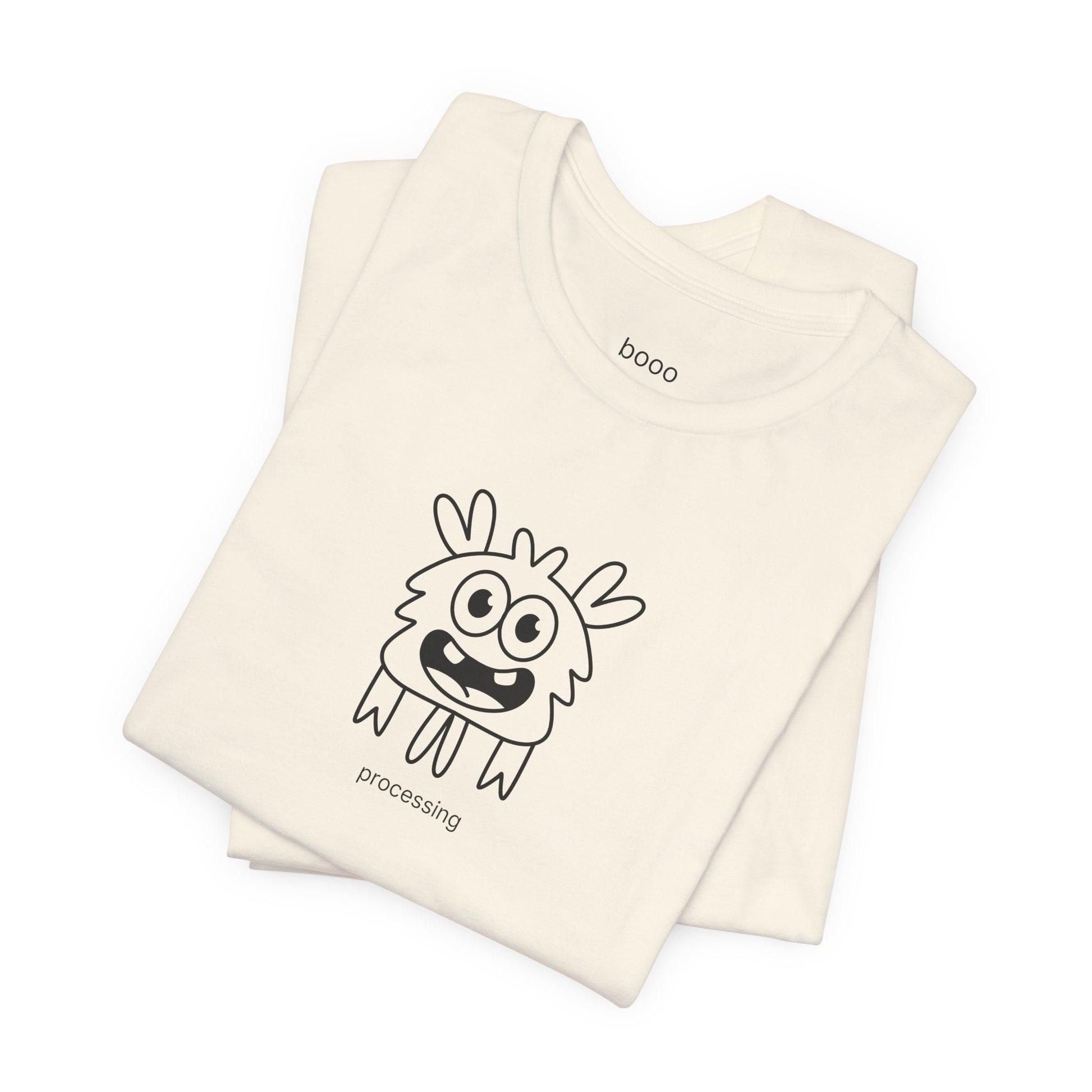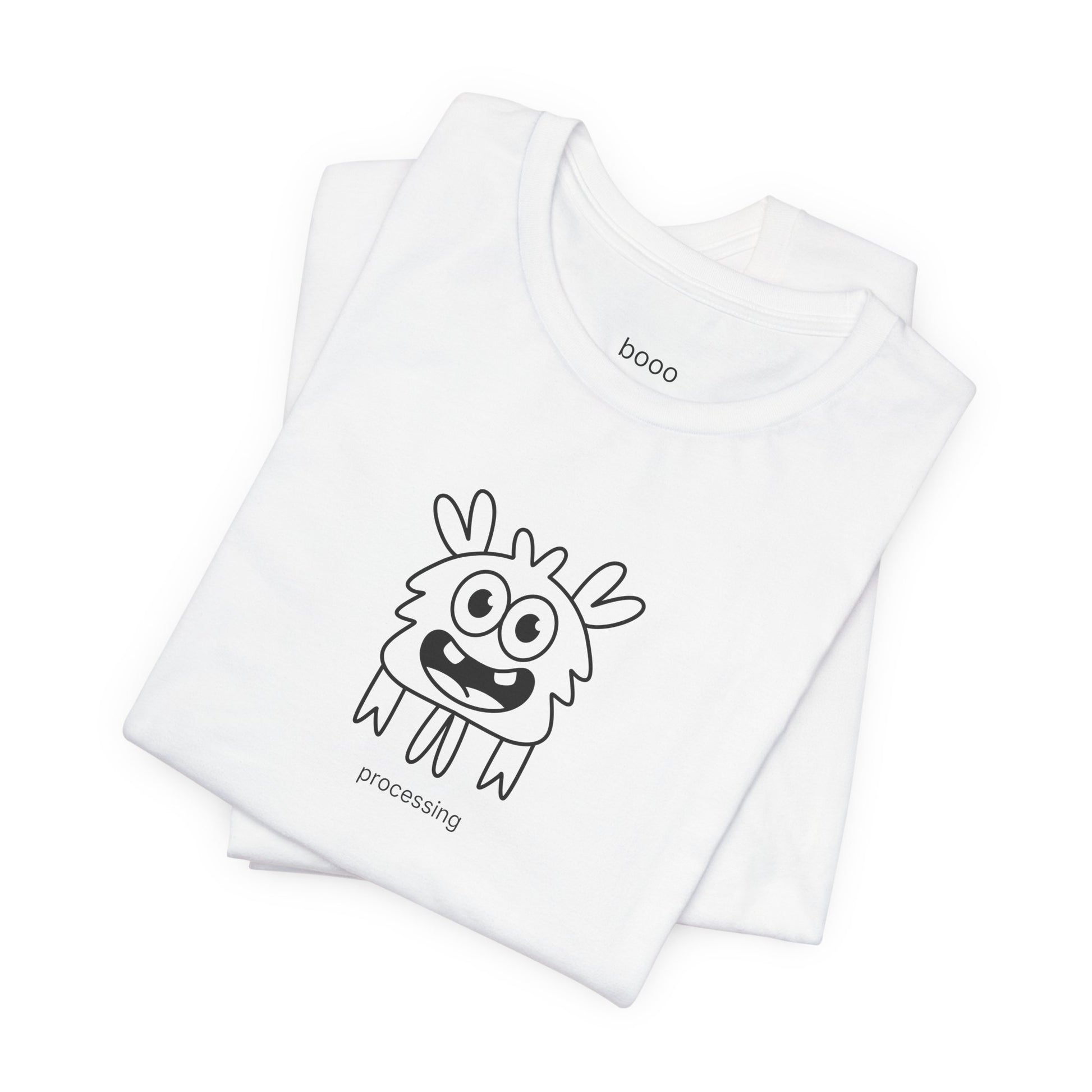 This minimalist line art showcases the Processing monster, a delightfully fluffy character with an expression that says "give me 3-5 business days to respond." The clean, simple aesthetic makes it versatile enough for any occasion while the character's relatable energy adds instant understanding to your outfit. The "Processing" tagline celebrates deep thinkers and those who need time to formulate responses—perfect for anyone whose brain requires a moment (or several) to catch up.